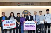 브릿지저널 김경미 기자 | 인천 동구장애인체육회는 지난 14일 제7회 인천광역시장애인생활체육대회 입상 선수 및 제45회 전국장애인체육대회 출전선수를 초대해 격려금을 지급했다고 밝혔다. 이날 행사는 지난 인천시 장애인생활체육대회 탁구 종목에서 금메달과 동메달을 딴 선수들의 노고를 치하하고, 전국장애인체육대회에 출전하는 선수들을 격려하기 위해 마련됐다. 김찬진 동구청장은 우수한 성적으로 입상한 선수와 전국장애인체육대회 출전하는 선수에게 격려와 응원의 메시지를 전달했다. 김찬진 동구청장은 “장애를 딛고 끊임없이 도전하는 선수의 열정과 노력이 자랑스럽다”며 “동구 장애인 체육활성화를 위해 적극 지원하겠다”고 말했다. 한편, 동구장애인체육회는 지역 장애인들이 체육을 통해 건강한 삶을 누릴 수 있도록 장애학생 대상 여름방학 체육활동, 장애인 탁구 교실, 수영교실, 파크골프 등의 프로그램을 운영중에 있으며 앞으로도 다양한 종목의 생활체육 프로그램과 체육 활동을 지원할 예정이다.