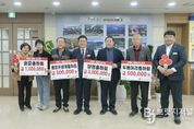 브릿지저널 김경미 기자 | 양평군은 지난 9일 양평출하회 300만 원, 용문출하회 100만 원, 두물머리출하회 50만 원, 물맑은쌈채출하회 50만 원 등 총 4개 출하회에서 500만 원의 해피나눔성금을 기탁했다고 밝혔다. 양평군 4개 출하회를 대표해 소감을 전한 전주선 양평출하회 회장은 “지역의 친환경 농업인들이 정성을 모아 마련한 성금이 도움이 필요한 분들에게 의미 있게 쓰이길 바란다”며 “앞으로도 지역사회에 보탬이 되는 활동에 힘쓰겠다”고 말했다. 이에 전진선 양평군수는 “바쁜 농업 현장 속에서도 이웃을 위한 나눔에 동참해 주신 양평군 4개 출하회 여러분께 깊이 감사드린다”며 “농업인들의 따뜻한 마음이 지역사회에 큰 힘이 될 것”이라고 화답했다. 한편, 양평군 4개 출하회는 친환경 농산물을 생산·공급하며 경기도 학교급식 등을 통해 학생들에게 안전한 먹거리를 제공하는 데 힘쓰고 있으며, 이날 기탁된 성금은 경기사회복지공동모금회를 통해 복지 사각지대에 놓인 취약계층을 위한 맞춤형 복지사업 추진에 활용될 예정이다.