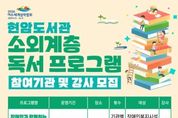 브릿지저널 김경미 기자 | 여수시립현암도서관은 오는 12월 3일부터 12일까지 소외계층 독서 프로그램 참여 기관을 공개 모집한다. 관내 아동・장애인 복지시설을 대상으로 15개 기관을 모집할 예정이며 선정 기관에는 전문 강사가 직접 방문해 맞춤형 독서 프로그램을 제공하게 된다. 운영 프로그램은 도서관 접근이 어려운 장애인들을 위한 「장애인을 위한 책 누리 마음 누리」와 소외계층 어린이들을 위한 「독서로 마음열기, 함께 읽는 즐거움」 총 2개 프로그램이다. 「장애인을 위한 책 누리 마음 누리」 프로그램은 내년 2월부터 11월까지, 「독서로 마음열기 함께 읽는 즐거움」은 내년 3월부터 11월까지 운영 예정이며, 각각 16회와 20회로 나눠 진행된다. 신청은 방문, 우편, 전자우편 중 선택 가능하며 신청 자격과 제출서류 등 자세한 사항은 여수시립도서관 누리집 공지사항을 참고하거나 현암도서관으로 문의하면 된다. 여수시 관계자는 “도서관 접근이 어려운 정보 소외계층을 위한 다양한 독서 프로그램을 제공해 문화 향유 기회를 확대하고자 한다”며 “지역 내 아동∙장애인복지시설의 많은 참여를 바란다”고 전