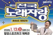브릿지저널 김경미 기자 | 대한민국 대표 전국민 참여 노래 경연 프로그램인 ‘KBS 전국노래자랑’ 함양군편이 함양스포츠파크체육관 준공을 기념해 2026년 1월 13일, 새롭게 준공된 함양스포츠파크체육관에서 개최된다. 이번 행사는 체육관의 성공적인 준공을 축하함과 동시에 지역 주민 간 소통과 화합을 도모하기 위해 마련됐으며, 함양군민을 비롯해 함양 소재 사업자, 직장인, 학생 등 누구나 참여할 수 있다. 참가 희망자는 2025년 12월 22일부터 2026년 1월 7일까지 읍·면 행정복지센터와 함양군청 문화체육과를 방문해 접수하거나, 이메일을 통해 신청하면 된다. 예심은 2026년 1월 11일 오후 1시, 함양군 고운체육관에서 진행될 예정이며, 예심을 통과한 참가자들이 본선 무대에 올라 노래 실력을 겨루게 된다. 이번 KBS 전국노래자랑 함양군편은 남녀노소에게 큰 사랑을 받는 진행자 남희석의 사회로 진행되며, 초대 가수로 배일호, 현숙, 강문경, 미스김, 성민지 등이 출연해 다채로운 무대를 선보일 예정이다. 함양군 관계자는 “이번 행사가 지역 문화예술 향유 기회를 넓히는 것은 물론, 군민