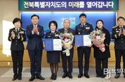 브릿지저널 윤나영 기자 | 전북특별자치도는 6일 도청에서 제13대 전북특별자치도 의용소방대 남·여 연합회장을 선출하고 임명장을 수여했다. 이번 선출로 전북특별자치도 의용소방대 남성연합회장에는 완주 민국열 대장이, 여성연합회장에는 정읍 김성순 대장이 각각 선출됐다. 연합회장은 전북특별자치도 의용소방대를 대표해 지역 의용소방대 간 협력과 연대를 강화하고 생활 속 안전문화 확산을 선도하는 역할을 수행하는 자리로, 전북 지역의 안전을 책임지는 핵심적인 책무를 맡게된다. 민국열 남성회장은 2016년 입대하여 2023년 의용소방대장, 2024년 완주 연합회장으로 활동하며 지역 내 화재 등 크고작은 재난대응과 봉사활동에 적극 참여해왔다. 특히 2024년 7월 기록적인 폭우로 피해를 입은 주민들이 하루빨리 일상으로 복귀할 수 있도록 생업을 뒤로한 채 복구활동에 전념하는 등 지역안전에 크게 기여한 바 있다. 또한, 김성순 여성회장은 2004년 입대 이후 20여 년 동안 화재와 풍수해 등 각종 재난 현장 최일선에서 시민의 생명과 재산을 지켜왔으며, 독거노인 돌봄과 취약계층 반찬나눔 등 이웃을 위한 따뜻한 봉사활동을