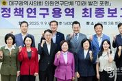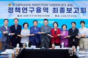 브릿지저널 김진석 기자 | 대구시의회 의원연구단체 ‘대구미래혁신포럼’(대표 이재숙 의원)은 9월 9일, 시의회 3층 회의실에서 소속 의원들이 참석한 가운데 정책연구용역 최종 보고회를 개최했다. 이날 보고회에서는 김태우 의원(수성구5)이 제안한 '광역·기초자치단체 청년정책 연계 활성화 방안 연구'와 김재용 의원(북구3)이 제안한 '공공 파크골프장의 운영 효율화를 통한 활성화 방안 연구' 등 총 2건의 과제가 발표됐으며, 각 과제를 수행한 연구진, 대구미래혁신포럼 소속 시의원, 대구시 관계자 등이 참석했다. 첫 번째 연구 발표자인 대구정책연구원 박경숙 부연구위원은 지방자치단체 간 공동 이슈 발굴과 청년 참여 기반의 공동 기획·집행, 제도 정비와 협력 거버넌스 체계화를 위한 정책 방향을 제시했다. 특히 연구 수행 과정에서 기초의원, 청년정책 담당 공무원, 청년센터장을 대상으로 세미나 및 간담회를 개최해 현장의 애로사항과 협업 아이디어를 폭넓게 수렴했고, 그 의견을 최종 보고서에 반영했다. 청년정책 연구를 제안한 김태우 의원은 “지역 청년정책의 실효성을 높이기 위해서는 청년 수요에 기반한 광역자치단체와 기