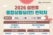 브릿지저널 정보영 기자 | 제주특별자치도는 13일 진명기 행정부지사 주재로 ‘2026년 설연휴 종합대책 보고회’를 열고 ‘민생에 온기를, 안전에 안심을 더하는 설명절’을 주제로 분야별 세부 추진계획을 점검했다. 이날 보고회에는 정무부지사를 비롯해 안전건강실장, 특별자치행정국장, 행정시 부시장 등 상황반별 실국단장 20여 명을 포함한 130여명의 간부공무원이 참석했다. 제주도는 14일부터 18일까지 특별자치행정국장을 총괄로, 총 7개반 1,491명을 투입해 종합상황실을 운영한다. 도 7개반 366명, 제주시 7개반 625명, 서귀포시 9개반 500명이 참여하며, 하루 평균 298명이 현장에서 비상근무를 선다. 제주 120 만덕콜센터와 당직 근무자가 도민과 관광객 불편신고를 접수한다. 지난 10일 수립해 추진 중인 설연휴 종합대책은 ▲민생경제 안정 ▲도민안전 확보 ▲교통․관광 편의 ▲도민불편 해소 ▲나눔실천 등 5개 분야로 구성됐다. 물가안정 및 소비촉진을 위해 탐나는전 적립률 상향과 전통시장 온누리상품권 환급행사 등 소비지원 대책을 추진한다. 탐나는전 적립률을 2월 한 달간 20%로 상