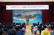 브릿지저널 윤나영 기자 | 울산 동구시니어클럽은 9월 8일 오후 2시 동구청 2층 대강당에서 노인일자리 참여 어르신 280여 명을 대상으로 직무 역량 강화를 위한 교육을 했다. 이번 교육은 아이사랑 도우미와 돌고래 공장 사업 참여자들의 직무능력을 향상하고자 마련된 것으로, 참여자들이 현장에서 직면할 수 있는 다양한 사례를 공유하고 해결 방안을 모색함으로써 현장 대응 능력과 직무 자신감을 높이는 시간을 가졌다. 기본적인 안전 수칙에 관한 교육도 병행하여 근무 중 발생할 수 있는 각종 안전사고에 대한 예방 의식을 강화했다. 김종훈 구청장은 “앞으로도 어르신들의 행복한 노후를 위해 세심하게 살피겠다”라고 말했다.