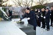 브릿지저널 정보영 기자 | 김천시는 2026년 1월 2일, 김천시 성내동 소재 충혼탑에서 새해 신년참배를 실시했다. 신년참배는 2026년 김천시의 안녕을 기원하고 새로운 도약에 대한 각오와 의지를 다지는 중요한 행사로, 이날 행사는 김천시장을 비롯한 김천시 보훈단체장, 국회의원, 시의원 등이 참석한 가운데 헌화와 분향, 묵념 순으로 진행됐다. 배낙호 김천시장은 “국가를 위해 헌신하신 순국선열과 호국영령들을 늘 기억하며 숭고한 정신을 이어받기 위해 노력하겠다. 병오년 새해에도 김천시민 모두의 가정에 충만한 행복과 희망이 찾아오기를 바란다.”라고 했다. 한편, 김천시 보훈의 상징인 김천시 충혼탑은 1962년 최초로 건립됐으며, 2025년에는 충혼탑 환경정비 공사를 통해 산책로 보행매트 설치, 노후난간 및 블록 교체, 안전데크 설치, 위패실 리모델링을 시행해 호국영령에 대한 예우를 높이고 충혼탑 이용객들에게 더욱 쾌적하고 안전한 환경을 제공하고 있다.