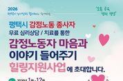 브릿지저널 김경미 기자 | 평택시노사민정협의회는 지난 2월부터 평택고용복지플러스센터 직업상담사를 대상으로 총 4회에 걸쳐 ‘감정노동 종사자 마음과 이야기 들어주기’심리상담 프로그램을 운영했다. 이번 프로그램은 감정노동에 종사하는 근로자들의 심리적 부담을 완화하고 건강한 노동환경을 조성하기 위해 마련됐으며, 감정노동 종사자 30여 명이 참여했다. 상담은 국제대학교 상담센터 소속 전문 심리상담사가 진행했다. 감정노동은 고객 응대 과정에서 자신의 감정을 조절하며 서비스를 제공해야 하는 업무 특성상 지속적인 스트레스와 심리적 부담에 노출되기 쉬운 만큼, 평택시노사민정협의회는 감정노동 종사자들의 심리적 안정을 지원하고자 이번 상담 프로그램을 운영했다. 평택시노사민정협의회는 올해 하반기에도 심리상담 지원을 지속적으로 추진할 계획이다.