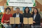 브릿지저널 정보영 기자 | 제주도교육청 함덕중학교는 23일 제주특별자치도지속가능발전협의회와 기후위기 대응 및 탄소중립 실천 교육 활성화를 위한 업무협약을 체결했다. 이번 협약을 통해 양 기관은 ▲기후위기 대응 및 탄소중립을 위한 협력체계 구축 ▲교육·홍보·캠페인 공동 추진 ▲지속가능한 지역사회 발전을 위한 정보·자원 공유 ▲기타 상생 협력과 파트너십 추진 등 4개 분야에서 협력하기로 했다. 양 기관은 이번 협약을 통해 학생들이 환경 감수성과 실천 역량을 길러 지속가능한 미래 사회를 선도할 인재로 성장할 것으로 기대하고 있다. 고태언 상임의장은 “학교와 지역사회가 연대하여 지속가능한 발전을 실현해 나가는 뜻깊은 출발”이라며 “탄소중립을 위한 다양한 활동을 적극 지원하겠다”라고 말했다. 이영숙 교장은 “탄소중립 실천교육 정책연구학교로서 학생들이 단순한 실천을 넘어 문제 분석과 해결 방안을 제안할 수 있는 역량 있는 미래 시민으로 성장하도록 지원하겠다”라고 밝혔다. 한편 함덕중학교는 이번 협약을 계기로 학생들에게 탄소중립 실천의