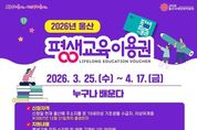 브릿지저널 윤나영 기자 | 울산시는 시민 누구나 평생학습의 기회를 누릴 수 있도록 ‘2026년 울산광역시 평생교육이용권(이하 이용권) 지원사업’을 본격 추진한다고 밝혔다. 이번 사업은 저소득층, 중장년, 노인, 장애인 등 다양한 계층을 대상으로 평생교육 수강료를 지원하는 제도로, 시민의 학습권 보장과 삶의 질 향상을 목표로 추진된다. 이용권 대상자로 선정되면 평생교육 강좌 수강료와 교재비로 사용할 수 있는 35만 원이 포인트로 지원된다. 대상자는 지급된 포인트로 관내 등록된 67개 사용기관의 온·오프라인 강의를 수강할 수 있다. 사용기관은 평생교육이용권 누리집에서 확인 가능하다. 올해 평생교육이용권은 총 2,404명 규모로 지원된다. 지원 대상자는 ▲저소득층 성인(19세 이상 기초생활수급자․차상위계층), 등록장애인(19세 이상)뿐만 아니라 ▲노인(65세 이상) ▲디지털 관련 평생교육 수강 희망자(30세 이상) ▲지역특화 대상자(40세 이상~65세 미만) 등 다양한 계층을 지원해 전 세대가 학습 기회를 누릴 수 있도록 할 계획이다. 우선, 1차로 울산시에 주소를 둔 19