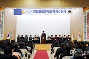 브릿지저널 윤나영 기자 | 강원도립대학교는 2월 13일 11시, 대학 다목적관에서 제27회 학위수여식을 진행했다. 이번 학위수여식에서 졸업생 230명이 영광스러운 학위를 수여받았으며, 졸업생과 학부모를 비롯해 김진태 강원특별자치도지사, 강원특별자치도의회 의원 등 약 400여 명이 참석해 졸업의 기쁨을 함께 나눴다. 이날 전체 수석을 차지한 레저스포츠과 정소영 학생이 강원특별자치도지사 표창 수상의 영예를 안았으며, 강원특별자치도의회 의장 표창은 바리스타제과제빵과 옥지훈 학생과 사회복지과 고요엘 학생에게 수여됐다. 또한 각 학과 수석 10명에게는 강원도립대학교 총장 표창이 수여됐으며, 우수한 학업 성취와 학과 활동을 통해 대학 발전에 기여한 22명의 학생들에게는 유관기관 및 단체장 표창이 수여됐다. 최종균 총장은 축사를 통해 졸업생들의 노력과 성취를 격려하며 “졸업생들은 지식뿐 아니라 사회가 요구하는 실력과 책임감을 함께 갖춘 인재”라며 사회 진출에 대한 기대를 전했다. 이어 졸업생들에게 끊임없는 도전과 자기 성찰의 중요성을 강조하며, “주변의 기대보다 자신의 내면의 목소리에 귀 기울이며
