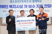 브릿지저널 김경미 기자 | 광양시는 지난 17일 포스코GYS테크가 사회복지시설 개·보수를 위한 지정기탁금 2천만 원을 전남지체장애인협회 광양시지회에 전달했다고 밝혔다. 이날 광양시청 만남실에서 열린 전달식에는 광양시장, 정우영 포스코GYS테크 대표, 박현석 전남지체장애인협회광양시지회장, 김재경 (재)광양시사랑나눔복지재단 이사장 등 10여 명이 참석했다. 기탁금은 전남지체장애인협회 광양시지회 시설의 지붕 개·보수 공사와 직원 휴게 공간 조성에 사용될 예정으로, 이용자와 종사자 모두의 안전과 근무 환경 개선에 실질적인 도움이 될 것으로 기대된다. 정우영 포스코GYS테크 대표는 “이번 기탁이 전남지체장애인협회 광양시지회를 이용하시는 분들과 현장에서 헌신하고 계신 종사자 여러분께 조금이나마 보탬이 되길 바란다”며 “앞으로도 지역사회와 함께 호흡하며 필요한 곳에 실질적인 도움을 전하는 사회적 책임을 다하는 기업이 되도록 노력하겠다”고 밝혔다. 시 관계자는 “비가 새지 않는 지붕과 잠시 숨을 고를 수 있는 휴게 공간은 이용자와 종사자 모두에게 큰 힘이 될 것”이라며 “현장의 필요를 세심하게 살피고 실질적인 나