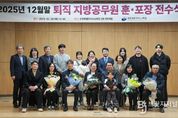 브릿지저널 윤나영 기자 | 강원특별자치도교육청은 30일 도교육청 2층 대회의실에서 퇴직 지방공무원 훈·포장 전수식을 개최했다. 이번 전수식은 올해 12월 말 정년퇴직자와 6월 말 명예퇴직자를 대상으로 그동안의 공직 공로를 기리기 위해 마련됐으며, 정부포상과 교육부 장관 표창이 수여됐다. 수상자는 총 31명으로, 정부포상 대상자는 △홍조근정훈장 1명 △녹조근정훈장 6명 △옥조근정훈장 10명 △근정포장 7명 △대통령표창 1명 △국무총리표창 3명 등 28명이며, 교육부 장관 표창은 3명에게 수여됐다. 오성배 부교육감은 “재직 기간 동안 투철한 공직관과 사명감을 가지고 강원교육 발전을 위해 헌신해 주신 공직자 여러분께 깊이 감사드린다”고 말했다.
