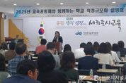 브릿지저널 정보영 기자 | 서귀포시교육지원청은 23일 교육지원청 대강당에서 ‘교육공동체와 함께하는 학교 적정규모화 설명회’를 개최했다. 이번 설명회는 지속적인 학령인구 감소와 소규모 학교 증가에 대응하여 미래형 적정규모 학교 육성 정책을 공유하고 교육공동체의 다양한 의견을 수렴하기 위해 마련됐다. 설명회에는 인구소멸 고위험 지역 초·중학교와 2026년~2030년 중기 학생 배치계획 기준으로 향후 5년간 신입생 수 10명 이하·전체 학생 수 30명 이하로 예상되는 초·중학교의 교장 및 학교운영위원장 등 관내 24개교 관계자 45명이 참석했다. 설명회는 적정규모 학교 육성 정책 소개, 농어촌유학 사업 현황 공유, 참석자 의견 청취와 질의응답 순으로 진행됐다. 김지혜 교육장은 “적정규모 학교 육성은 교육청만의 과제가 아니라 교육공동체가 함께 지혜를 모아야 가능한 일”이라며 “이번 설명회를 통해 지역 특성과 현장 요구를 반영한 정책을 추진해 나가겠다”라고 말했다.