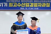 브릿지저널 김경미 기자 | 경상국립대학교 해양과학대학은 12월 17일 오후 해양과학대학 해양누리관에서 ‘2025년 제31기 최고수산업경영자과정 수료식’을 개최했다. 이날 수료식에서는 해양과학대학 이정석 학장, 최고수산업경영자과정 박주동 교학부장을 비롯해 경상남도 송상욱 수산정책국장, 한국수산업경영인경상남도연합회 곽영효 회장 등 주요 내빈이 참석해 수료생들을 축하·격려했다. 이날 행사에서는 32명이 수료했다. 이정석 학장은 “해양수산 분야에 특화된 최고수산업경영자과정 교육을 통해 수료생들이 고수온, 적조, 수산물 소비 위축 등의 어려움을 극복하고, 우리나라 어선업, 양식업, 수산가공 및 유통 산업에서 도전정신을 가지고 기회를 펼쳐보기를 기대한다.”라고 말했다. 이날 수료식 시상식에는 △총장 표창: 이준모, 강철훈, 송유명 △해양수산부장관상: 최정선 △경상남도지사상: 최원석, 박정열, 백나영, 박우석 △해양경찰청장 표창: 이경미 △통영해양경찰서장 표창: 홍종철 △경상국립대학교 총동문회장상: 한재영, 박상욱 △한국수산업경영인 중앙연합회장 표창: 최진, 나해찬, 류승훈 △해양과학대학장 표창: 김석재, 차동