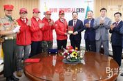 브릿지저널 정보영 기자 | 해병대전우회는 9월 2일 대전시청 10층 응접실에서 이장우 대전광역시장에게 감사패를 전달했다. 이번 감사패는 해병대전우회 대전광역시연합회의 발전과 활동에 대한 시장의 꾸준한 지원과 관심에 대한 감사의 뜻을 담은 것이다. 이날 행사에는 해병대전우회 중앙회와 대전지부 관계자 등 9명이 참석했으며, 이승도 총재는 “지역사회와 국가 안보를 위해 헌신해 온 해병대전우회 활동에 변함없는 성원을 보내주신 시장님께 깊이 감사드린다”라고 전했다. 이장우 시장은 “해병대전우회가 재난 지원과 보훈, 봉사 현장에서 든든한 역할을 하고 있어 시민들이 신뢰한다”라며 “앞으로도 시와 전우회가 함께 협력하겠다”라고 화답했다.
