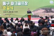 브릿지저널 윤나영 기자 | 울산 동구는 1월 26일 오후 2시 동구 동부동 99-15번지 일원에 지역 주민 150여 명이 참석한 가운데 동구파크골프장 준공식을 개최했다. 동구파크골프장은 안정적인 생활체육 공간 조성을 통하여 주민들의 체력 증진과 건강한 삶을 위하여 총면적 23,466㎡의 규모에 18홀과 부대시설을 조성했다. 시설 조성을 위해 총사업비 73억 5천만 원이 투입됐으며, 2023년 6월 개발제한구역 관리계획 미반영 시설 승인 후 2024년 1월 도시관리계획 결정, 2024년 11월 도시계획시설 실시계획인가, 2025년 4월 공사 착공 및 12월 준공됐다. 한편, 파크골프장을 최상의 상태로 주민들이 이용할 수 있도록 잔디 활착 및 생육을 위해 상반기에는 운영하지 않고 하반기에 개장할 계획이다. 김종훈 동구청장은 “동구파크골프장 준공으로 주민들의 건강 증진과 여가생활에 기여할 것으로 기대된다.”라고 말했다.