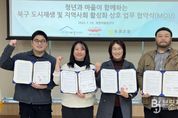 브릿지저널 김진석 기자 | 대구 북구 도시재생지원센터와 지역 청년기업 커뮤니티디자인 내마음은 콩밭 협동조합, 태종기획은 1월 19일 복현어울림센터에서 북구 지역사회 활성화 및 도시재생사업의 효과적인 추진을 위해 상호 협력 강화 업무협약(MOU)을 체결했다. 세 기관은 이번 협약을 통해 도시재생과 커뮤니티디자인, 청년 기획 역량을 연계하여 청년과 마을이 함께 어우러지는 지속 가능한 지역공동체 조성을 목표로 상호 협력해 나가기로 했다. 협약의 주요 내용으로는 ▲북구 도시재생사업과 연계한 커뮤니티 활성화 프로그램 공동 기획·운영 ▲청년 및 대학생의 지역사회 참여 확대를 위한 청년 문화 프로그램 및 역량강화 활동 추진 ▲청년과 주민이 함께 참여하는 주민 주도형 도시재생 프로젝트 협력 ▲도시재생 현장지원 활동 및 주민 교육·컨설팅 사업 공동 추진 등이 포함되어 있다. 특히 이번 협약은 청년의 기획력과 창의성이 마을의 일상과 결합해 청년에게는 지역에서의 실질적인 활동 기회를 제공하고, 마을에는 새로운 활력을 불어넣는 상생 구조를 만들어간다는 점에서 의미가 크다. 김은윤 북구 도시재생지원센터장은 “이번 3자 협