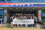 브릿지저널 윤나영 기자 | 울산동구보건소는 9월 30일 오전 9시 울산대학교 의과대학 예과 1학년 학생 30명을 대상으로 보건소 견학 프로그램을 운영했다. 이번 견학은 미래 의료인을 꿈꾸는 학생들에게 지역사회 보건사업의 실제 운영 현장을 소개하고, 공공보건의 역할을 이해할 기회를 제공하기 위해 마련됐다. 이날 행사는 청사 견학을 비롯해 △ 보건소 주요 사업 현황 안내, △ 금연클리닉 상담, △ 만성질환 예방·관리 상담, △ 정신건강복지센터 스트레스 뇌파검사 체험 등으로 진행됐다. 특히 박수환 보건소장은 학생들에게 보건소의 주요 기능과 사업 현황을 직접 소개하고, 질의응답 시간을 가짐으로써 지역 보건의 중요성을 강조했다. 동구보건소장은 “앞으로도 지역사회 의대생들이 지역 보건의 가치를 이해하고 공공의료의 중요성을 인식할 수 있도록 다양한 체험 기회를 제공하겠다.”라고 말했다. 이번 견학에 참여한 한 학생은 “교과서로만 보던 보건사업을 실제로 경험해 보니 지역 주민의 건강을 지키는 보건소의 역할이 매우 크다는 것을 알게 됐다.”라고 소감을 밝혔다.