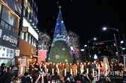 브릿지저널 윤나영 기자 | 울산 중구가 11월 28일 오후 6시 30분 성남동 문화의거리 옛 울산초등학교 앞에서 성탄절 나무(크리스마스 트리) 및 경관조명 점등식을 개최했다. 이번 행사에는 김영길 중구청장과 박경흠 중구의회 의장, 박성민 국회의원, 시·구의원, 지역 주민 등 150여 명이 함께했다. 이날 행사는 △식전 공연 △대형 성탄절 나무(크리스마스 트리) 조형물 점등 △기념사 △축사 △축하공연 △조형물 관람 순으로 진행됐다. 중구는 연말을 맞아 희망찬 분위기를 조성하고 성남동 원도심 상권을 활성화하고자 ‘따뜻한 겨울빛으로 물든 거리’라는 주제로, 문화의거리와 젊음의거리 등에 다양한 경관조명을 설치했다. 옛 울산초등학교 앞~시계탑사거리~보세거리 입구 구간에는 대형 성탄절 나무(크리스마스 트리)와 종·황금 구름·산타 모자 모양 조형물, 불빛 조명 시설(루미나리에) 등을 설치했다. 젊음의거리에는 네온 거울 사진 촬영 구역(미러 포토존)과 사랑표·선물 상자 모양 조형물 등을 세웠다. 특별히 올해는 옛 울산초등학교 삼거리 외곽 도로변에 별똥별이 떨어지는 듯한 형태의 은하수 경관