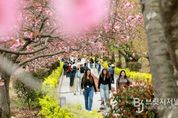 브릿지저널 정보영 기자 | 경주 불국사공원 겹벚꽃이 만개를 앞두고 분홍빛 물결을 이루며 상춘객들의 발길을 끌고 있다. 경주시는 15일 불국사 입구 일대에 조성된 불국사공원 겹벚꽃이 최근 본격 개화를 시작해 이번 주말 절정을 맞을 것으로 전망된다고 밝혔다. 공원에는 겹벚꽃나무 300여 그루가 군락을 이루고 있으며, 만개 시 산책로를 따라 분홍빛 꽃터널을 이루며 장관을 연출한다. 머리 위로 쏟아지는 꽃잎 사이를 걷는 색다른 봄 풍경이 방문객들의 발길을 붙잡고 있다. 실제로 불국사공원에는 가족 단위 관광객과 연인, 친구들의 발길이 이어지며 사진 촬영과 산책을 즐기는 모습이 곳곳에서 눈에 띈다. 겹벚꽃 특유의 풍성한 꽃잎 덕분에 ‘인생샷 명소’로 입소문을 타고 있다. 시는 개화 시기에 맞춰 공원 일대 경관 조명을 운영해 야간에도 겹벚꽃을 감상할 수 있도록 하고 있다. 낮에는 화사한 분홍빛 풍경을, 밤에는 조명과 어우러진 또 다른 분위기를 감상할 수 있다. 불국사공원은 별도의 입장료 없이 이용할 수 있으며, 주차는 인근 공영주차장을 이용하면 된다. &nbs