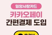 브릿지저널 김경미 기자 | 경남 밀양시는 밀양사랑카드 이용자의 결제 편의성을 높이기 위해 오는 23일부터 카카오페이 간편결제 서비스를 도입한다고 밝혔다. 이번 서비스 도입에 따라 이용자들은 카카오페이 앱 내 결제수단에 밀양사랑카드를 미리 등록하면, 별도의 실물카드 소지 없이도 바코드나 QR 스캔 방식 등으로 간편하게 결제할 수 있게 된다. 그동안 실물카드를 소지해야 했던 번거로움이 해소되어, 모바일 기반의 결제 환경이 크게 향상될 것으로 보인다. 본 서비스는 3월 23일 오전 9시부터 본격적으로 시행된다. 시는 최근 급증하는 비대면·모바일 중심의 소비 트렌드에 발맞춰 이번 서비스를 도입함으로써, 젊은 층을 비롯한 다양한 시민들의 접근성을 높이고 지역 화폐인 밀양사랑카드의 사용 활성화에도 크게 기여할 것으로 기대하고 있다. 밀양시 관계자는 “이번 카카오페이 간편결제 도입으로 시민들이 보다 편리하게 밀양사랑카드를 이용할 수 있게 됐다”며 “앞으로도 다양한 결제수단과의 연계를 통해 이용 편의성을 지속적으로 개선해 나가겠다”고 말했다.