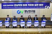브릿지저널 김경미 기자 | 경남연구원은 11일 경남연구원 1층 가야대회의실에서 경남의 정체성 확립과 미래 발전 전략 모색을 위한 학문적 논의의 장인 「2025 경남학 포럼」을 개최했다고 밝혔다. ‘경남학의 미래 가치와 실천 방안’을 대주제로 열린 이번 포럼은 도내 4개 대학(경상국립대, 국립창원대, 인제대, 경남대)의 후원으로 진행됐으며, 70여 명의 전문가, 도민, 관계 공무원 등이 참석해 경남학에 대한 높은 관심을 보여주었다. 오동호 경남연구원장은 개회사에서 "이번 포럼은 경남학포럼의 역사적인 첫 출범"임을 강조하며, “경남학은 경남의 정체성 확립과 미래 비전 설계를 위한 든든한 지적 토대로서, 경남연구원이 ‘경남학 연구의 산실이자 플랫폼’으로 도약하는 중요한 이정표가 될 것이다”라고 말했다. 김기영 경상남도 기획조정실장은 “경남학은 도민의 삶과 지역의 가치를 규명하고 정책·문화 영역에서 활용할 중요한 자산”이라며, “도정 또한 경남학이 지역의 미래전략으로 자리매김할 수 있도록 연구 기반 확충과 정책 개발을 적극 지원하겠다”고 밝혔다. 백태현 경상남도의회 기획행정위원장은 “경남학은 과거 성찰과