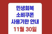 브릿지저널 김경미 기자 | 음성군은 민생회복 소비쿠폰 사용기한이 이달 30일로 다가옴에 따라 미사용 군민들에게 기한 내 사용을 당부했다. 군은 1차 소비쿠폰 9만2081명, 181억6천만원 지급(99.2%), 2차 소비쿠폰 8만6636명, 86억6천만원(97.82%)을 지급해 자영업자와 소상공인의 매출 증대 등 지역경제 활성화에 기여했다. 1차, 2차 소비쿠폰 모두 이달 30일까지 사용해야 하며 기간 내 사용하지 않으면 잔액은 자동 소멸한다. 음성행복페이 및 신용카드, 체크카드로 받은 포인트도 동일하다. 소비쿠폰은 연 매출 30억원 이하 소상공인 업종과 음성행복페이 가맹점에서 사용이 가능하다. 현연호 일자리경제과장은 “민생회복 소비쿠폰이 지역 경제에 활력을 주길 기대한다”며 “민생회복 소비쿠폰 사용기한이 오는 30일로 종료됨에 따라 기한 내 남은 잔액을 꼭 사용해달라”고 당부했다.