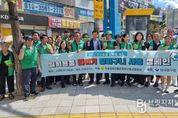 브릿지저널 김진석 기자 | 새마을 직·공장 중구협의회는 지난 5일 서문시장 큰장네거리 인근에서 회원 40명이 참석한 가운데 ‘탄소 중립 캠페인’을 펼쳤다. 이날 캠페인에서는 쓰레기 배출 감량, 1회용품 사용 줄이기, 자원 재활용을 적극적으로 홍보하고, 휴대용 장바구니를 시민들에게 배부하며 저탄소 친환경 사회 실현을 독려했다. 류규하 중구청장은 “이번 캠페인을 통해 주민들이 탄소 중립을 생활 속에서 실천할 수 있는 계기가 되길 바란다”며, “구청에서도 기후위기 대응과 지속 가능한 도시 조성을 위해 다양한 친환경 정책과 활동을 이어가겠다”고 말했다.