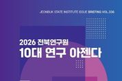 브릿지저널 윤나영 기자 | 전북특별자치도의 지속가능한 미래 전략을 설계하는 전북연구원(원장 최백렬)은 민선 8기 도정 비전 실현과 급변하는 정책 환경에 선제적으로 대응하기 위해 2026년 ‘10대 연구 아젠다’를 선정·발표했다. 전북연구원은 20일 이슈브리핑을 통해 ▲도민경제 ▲농생명산업 ▲문화·체육·관광 ▲균형발전 ▲도민행복 등 5대 분야를 정책적 틀로 설정하고, 분야별 핵심 과제를 구체화한 10대 연구 아젠다를 확정했다고 밝혔다. 이번 아젠다는 전북의 미래 경쟁력 확보와 지속가능한 지역 발전을 목표로, 중장기 도정 핵심 과제를 선도적으로 뒷받침하는 전략적 연구 과제들이다. 10대 연구 아젠다는 △피지컬AI·RE100 대전환의 선도모델 정립과 확산 △전북 성장엔진 고도화로 산업혁신 생태계 강화 △전북경제 자생력 강화를 위한 전주기 밸류체인 고도화 △농생명산업 특화 발전과 농촌사회 혁신역량 강화 △문화·체육·관광 정책의 새판짜기와 국내 거점화 △지역특화형 정주인구 역동성 회복 △생활인구 유입·정주화 제도 고도화 △지역 중심 국가균형성장 전략축 재설계 △전북형 돌봄기본사회 기반 조성 △지역 주도 기후·생태·환경 정책모델