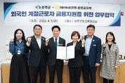 브릿지저널 윤나영 기자 | 완주군이 외국인 계절근로자들의 원활한 금융 서비스 이용과 안정적인 정착을 돕기 위해 NH농협은행 완주군지부와 긴밀한 협력 체계를 구축했다. 완주군은 지난 3일 군청 전략회의실에서 이종훈 완주군수 권한대행과 원천연 NH농협은행 완주군지부장이 참석한 가운데 ‘외국인 계절근로자 금융지원을 위한 업무협약’을 체결했다. 이번 협약은 완주군에서 운영하는 계절근로자 사업을 활성화하고, 근로자들이 겪는 금융 장벽을 해소하여 사회적·경제적 지위를 높이기 위해 마련됐다. 협약에 따라 양 기관은 외국인 계절근로자의 안정적인 정착을 위해 ▲사업 일정 공유 및 공문 지원 ▲통장 개설 전반 협조 ▲환율 우대 및 수수료 감면 ▲통번역 안내장 제공 ▲농장주 대상 금융 교육 실시 등에 적극 협력하기로 했다. 이종훈 군수 권한대행은 “이번 협약을 통해 외국인 계절근로자들이 겪는 언어와 절차의 어려움을 해소하고, 안정적으로 근로에 전념할 수 있는 환경을 만들겠다”며 “앞으로도 지역 농업 활성화를 위해 다양한 지원책을 강구하겠다”고 밝혔다.