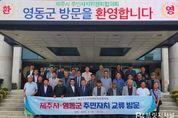 브릿지저널 정보영 기자 | 제주시 주민자치위원회협의회는 주민자치 역량 강화와 상생발전을 위해 19일 충북 영동군을 방문해 영동군 주민자치협의회와 뜻깊은 교류의 시간을 가졌다. 이번 방문은 지난 7월 제주시와 영동군 양 협의회가 우호 협력 증진과 공동 발전을 위한 업무협약을 체결한 뒤 처음으로 이루어진 교류 자리로, 상호 간 주민자치에 대한 이해를 넓히고 지속 가능한 협력 관계를 다지는 중요한 계기가 됐다. 양 협의회는 고향사랑 상호기부를 통해 지역발전을 응원하고 고향사랑기부제의 취지를 확산하며 지역경제 활성화에 힘써왔고, 이번 방문에서는 간담회를 열어 주민자치 교류 확대와 특산품 홍보 방안 등을 논의했다. 또한, 세계국악엑스포에 함께 참여해 다양한 전통 음악과 문화를 체험하며 문화적 공감대를 확산하고, 두 지역 간 협력 기반을 더욱 튼튼히 하는 시간을 가졌다. 고정학 제주시주민자치위원회협의회장은 “이번 방문은 단순한 교류가 아니라 지역 간 상생과 협력의 가치를 실천한 뜻깊은 자리였다”며, “앞으로도 주민자치 역량을 높이고 지역사회 발전에 기여하는 다양한 교류 활동을 이어가겠다”고 밝혔다.