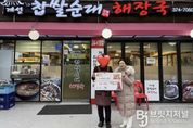 브릿지저널 김경미 기자 | 서울 은평구 응암3동은 지난 9일 고경숙 ‘개성 찹쌀순대 해장국’ 대표로부터 ‘2026 희망온돌 따뜻한 겨울나기’ 성금 1백만 원을 기탁받았다고 밝혔다. 이번 성금은 지역 내 취약계층을 위해 마련된 것으로, 관내 저소득층, 독거노인, 장애인 가구 등 도움이 필요한 이웃에 전달 예정이다. 고경숙 대표는 “작은 정성이지만 추운 겨울을 보내는 이웃들에게 조금이나마 도움이 되길 바란다”며 “앞으로도 지역사회와 함께하는 나눔 활동을 지속해 나가겠다”고 말했다. 김영숙 응암3동장은 “어려운 경제 여건 속에서도 이웃을 생각하는 따뜻한 마음을 전해주셔서 깊이 감사드린다”며 “기탁해 주신 성금은 꼭 필요한 분들께 정성껏 전달하여 소중히 사용하겠다”고 감사의 뜻을 전했다.