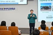 브릿지저널 윤나영 기자 | 완주군의회 김재천 부의장이 지난 24일 수소에너지고등학교에서 실시된 채용 후보자(장학생) 선발 제도 설명회에 참석해 수소고등학교 학생들을 격려하고, 수소에너지고등학교 교장과 한솔케미칼 관계자 등과 함께 취업 연계방안에 대해 논의를 이어갔다. 또한, 김 부의장은 지역 산업과 교육 현장을 잇는 가교 역할을 수행하며 추진한 산학협력이 우수인재 양성과 지역정주 지원 강화라는 실질적 성과를 확인하고, 확대방안을 모색했다. 김재천 부의장의 중재와 지속적인 협의를 통해 체결된 한솔케미칼 전주공장과 수소에너지고등학교 간 업무협약(MOU)이 본격 시행되면서, 수소에너지고 학생들의 안정적인 진로 설계와 취업 기회가 크게 확대됐다. 특히 지난 2024년도 체결한 협약에 올해에 이어 2026학년도 신입생부터 매년 4명의 장학생을 선발하고, 이 가운데 2명의 우수 인재를 한솔케미칼에서 채용하는 체계적인 취업 연계 모델이 가동된다. 이는 교육–장학–채용으로 이어지는 선순환 구조를 통해 지역 우수인재를 체계적으로 양성하고, 졸업 후 지역 내 정주를 유도하는 데 초점을 맞추고 있다. 배지