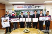 브릿지저널 김경미 기자 | 김해시는 11일 오전 11시 30분 시장실에서 BNK경남은행, ㈜먹깨비와 공공배달앱 ‘먹깨비’ 활성화를 위한 협업 협약을 맺고 지역경제 회복과 소상공인의 경영부담 완화를 위한 협력을 강화하기로 했다. 이번 협약으로 BNK경남은행은 모바일뱅킹 앱 내에 공공배달 전용 채널을 구축해 가맹점 등록부터 주문·결제까지 한 번에 처리할 수 있는 통합 서비스를 제공할 예정이다. 또 김해시민 고객을 대상으로 한 이벤트 등으로 공공배달앱 홍보, 가맹점 유치에 적극 협력하기로 했다. ㈜먹깨비는 경남은행 고객에게 회원가입 할인쿠폰 지급, 추가 포인트 적립 등 특별 혜택을 제공하고, 가맹점에는 다양한 홍보물품을 무상 지원해 공공배달앱 가맹등록 확대를 유도한다. 김해시는 SNS, 김해시보, 전광판 등 시 공식 홍보매체를 활용해 공공배달앱 ‘먹깨비’ 인지도 제고와 이용 활성화를 적극 추진하고, 읍·면·동 자생단체 회의 등을 통해 신규 가맹점 모집과 시민 참여 확대에 힘쓰기로 했다. 이번 협약 기념 특별 프로모션으로 11일부터 1만2,000원 이상 주문 시 즉시 사용할 수 있는 2,000