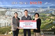 브릿지저널 윤나영 기자 | 울산 제93호 아너소사이어티 회원인 김문옥 씨가 1월 21일 오전 10시 30분 중구청 구청장실을 찾아 울산사회복지공동모금회를 통해 이웃돕기 후원금 500만 원을 전달했다. 이번 전달식에는 김영길 중구청장과 김문옥 씨, 양호영 울산사회복지공동모금회 사무처장 등 3명이 참석했다. 해당 후원금은 지역 내 저소득 가정 25세대에 각 20만 원씩 전달될 예정이다. 한편, 김문옥 씨는 사회복지공동모금회 고액 기부자 모임인 아너소사이어티 회원으로서 어려운 이웃을 위한 나눔을 지속적으로 펼치고 있다. 김문옥 씨는 “그동안 지역사회로부터 받은 사랑을 다시 나누고 싶었다”며 “힘든 시간을 보내고 있는 이웃들에게 조금이나마 보탬이 되길 바란다”고 말했다. 김영길 중구청장은 “지역사회를 위해 의미 있는 나눔을 실천해 주셔서 감사드린다”며 “따뜻한 마음을 담아 도움이 필요한 분들에게 후원금을 잘 전달하겠다”고 밝혔다.