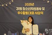브릿지저널 윤나영 기자 | 영월군청소년문화의집봉사동아리 소속 이가윤(무릉초6)이 지난 14일 ‘2025년 강원 청소년자원봉사 및 우수활동대회’ 시상식에서 한국청소년활동진흥원 이사장상을 받았다. 올해 문화의집 봉사동아리 ‘봉달’은 지역사회 환경문제 개선을 위해 주민들이 탄소중립과 올바른 쓰레기 배출을 실천할 수 있도록 돕는 청소년 자기주도형 봉사활동 ‘세이브어스’를 진행했다. 이번 활동은 봉사활동의 기획과 운영까지 모든 과정에 청소년이 주도적으로 진행했으며 이가윤 청소년은 이 과정에 자신의 변화점을 참여수기로 작성하여 우수상을 받게 됐다. 이가윤(무릉초6)은 “이번 활동은 제 기억에 평생 남을 듯한 뜻깊은 활동이었고, 이렇게 상까지 받게 되어 기쁘다”라며 “올해의 활동은 끝났지만 앞으로도 지속적으로 우리동네에 관심을 두고 환경을 지키는 활동들을 이어 나가겠다”라고 말했다.
