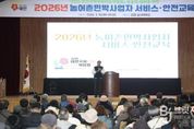 브릿지저널 정보영 기자 | 태안군이 ‘2026년 태안국제원예치유박람회’를 앞두고 농어촌민박 사업자를 대상으로 서비스 및 안전 교육을 마쳤다. 군은 지난 10일 안면 실내체육관, 17일 태안군문화예술회관에서 관내 농어촌민박 사업자 900여 명을 대상으로 쾌적한 농촌 관광 환경을 조성하기 위한 3시간의 교육을 실시했다. 이번 교육은 농어촌민박사업자의 친절 서비스와 안전 의식을 제고하기 위해 마련됐으며, 태안소방서와 협력한 소방 안전관리 교육과 외부 전문가의 친절 서비스 교육으로 구성됐다. 구체적으로는 △소화기 사용법 △화재 발생 시 대응법 △응급처치법 △전기·가스 안전관리 △민박 관련 법령과 제도 △객실·주변 정리 △손님 환대 △예약 △분쟁 해결 △식중독 예방 등 실무에 필요한 내용을 중점적으로 다뤘다. 군은 ‘2026년 태안국제원예치유박람회’를 대비해 농어촌민박업소의 서비스 수준과 안전관리 역량을 사전에 끌어올려 방문객 만족도를 높이고, 안전하고 쾌적한 숙박 환경을 선제적으로 조성하겠다는 방침이다. 군 관계자는 “농어촌민박은 관광객이 태안을 처음 만나고 머무는 중요한 공간”이라며 “박람회