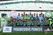 브릿지저널 윤나영 기자 | 정성주 김제시장이 전북현대와 손잡고 ‘김제파트너데이’를 통해 지평선축제와 김제쌀을 홍보했다. 22일 김제시에 따르면 지난 20일 오후 4시 30분 전주월드컵경기장에서 김천상무와 전북현대 30라운드 경기에 참가해 ‘김제파트너데이’를 진행했다. 시는 이날 홍보부스를 마련해 오는 10월 8일부터 12일까지 진행되는 ‘김제지평선축제’를 알리고 이와 함께 ‘김제지평선쌀’, ‘쌀 마스크팩’, ‘지평선축제 체험권’ 등을 팬들에게 선물했다. 홍보부스에서 김제지평선축제 SNS(유튜브, 인스타그램) 구독 이벤트와 김제시 SNS 구독이벤트, 고향사랑기부로 이날 경기를 찾은 2만여 관중들에게 호응을 얻었다. 특히, 이날 시는 20kg 쌀 20포를 전북현대 선수단에 기부했으며 전북현대는 기증받은 쌀 20포를 김제 지역 노인의료복지시설(4곳)에 다시 기증했다. 정 시장은 “우승을 향해 달려가는 전북현대가 김제시와 함께 김제파트너데이를 진행하게돼 김제에서 열리는 김제지평선축제 역시 전북도민과 전국민에게 사랑을 받는 축제가 될 것으로 기대된다”면서 “특히, 김제지평선축제가 추석시기에 진행