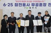 브릿지저널 김경미 기자 | 70여년간 주인을 찾지 못했던 6·25전쟁 참전용사의 무공훈장이 30일 유족의 품으로 돌아갔다. 청주시는 임시청사 직지실에서 화랑무공훈장 전수식을 개최하고, 6·25전쟁에 참전해 혁혁한 공을 세운 고(故) 김재권 일병과 故 손광수 하사의 유족에게 훈장을 수여했다. 행사에는 이범석 청주시장과 故 김재권 일병, 故 손광수 하사의 유족이 참석했다. 故 김재권 일병은 제9사단 29연대 소속으로, 화천군 북쪽에 위치한 강원도 금화 일대에서 벌어진 중부전선 최대 전투인 ‘금화지구 전투’에서 큰 공을 세우고 전사했다. 故 손광수 하사는 제1102야전공병단 소속으로 금화지구 전투를 비롯해 강원도 일대 여러 전투에서 맹렬히 싸운 공로를 인정받아 화랑무공훈장을 수여받게 됐다. 유족들은 “나라를 위해 헌신하신 참전용사들의 명예를 되찾아 주신 모든 분들께 감사드린다”고 소감을 전했다. 무공훈장을 전수한 이범석 청주시장은 “늦게나마 유가족께 6·25전쟁 화랑무공훈장을 전달해 드릴 수 있어 매우 기쁘고 영광스럽다”며 “청주시는 국가를 위해 헌신하신 유공자분들의 희생과 헌신