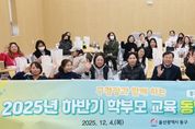 브릿지저널 윤나영 기자 | 울산 동구는 12월 4일 오후 2시부터 4시까지 동구 청소년 진로지원센터 3층에서 ‘2025년 하반기 학부모 교육 동행(동구와 행복한) 반상회’를 개최했다. ‘학부모 교육 동행 반상회’는 관내 초·중·고등학교 학부모 30여 명이 참석했으며, 학부모 대상 진로 체험과 구청장과의 대화로 나뉘어 진행됐다. 학부모들은 강사의 지도에 따라 ‘플라워 박스 만들기’ 체험을 하며 자녀의 진로 교육을 간접적으로 경험하는 시간을 가졌다. 이어 김종훈 동구청장과 함께하는 ‘구청장과의 대화’가 열려 구청장과 학부모들이 자유로운 분위기 속에서 지역 교육과 생활 전반에 대한 다양한 의견을 나눴다. 김종훈 동구청장은 “아이들의 성장과 행복을 위해 학부모님들의 목소리에 귀 기울일 수 있었던 뜻깊은 시간이었다”라며, “앞으로도 학교와 가정, 지역이 함께하는 교육 공동체를 만들어가겠다”라고 말했다.