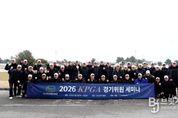 브릿지저널 김경미 기자 | (사)한국프로골프협회(회장 김원섭, 이하 KPGA)가 2026년 ‘KPGA 경기위원 세미나’를 개최했다. 3월 5일부터 6일까지 양일간 전북 군산에 위치한 군산CC에서 열린 ‘KPGA 경기위원 세미나’에는 최병복 신임 경기위원장(64)을 포함해 42명의 경기위원이 참석했다. 1일차인 5일에는 2026년 KPGA가 주최, 주관하는 투어 일정과 변경사항을 포함해 경기위원의 역할과 임무, 로컬룰과 플레이속도, 팀별 현장 실습 등이 이뤄졌다. 2일차인 6일에는 경기위원 룰 테스트, 응급처치 교육 등이 진행됐다. 최병복 경기위원장은 “조직을 이끌어 가는 것에 있어 가장 중요하게 생각하는 것은 ‘팀워크’다. 경기위원 모두가 사명감을 가지고 협력해 선수들에게 신뢰받는 경기위원회가 되도록 최선을 다하겠다”며 “대회장에서 성숙한 판단과 공정한 판정이 이루어질 수 있도록 모든 경기위원이 철저히 준비하고 있다. 2026시즌 더욱 발전된 코스 제공과 원활한 경기 운영으로 매 대회 선수들이 만족스러운 플레이를 펼칠 수 있도록 돕겠다”고 말했다. 한편 KPGA는 지난해 12월 ‘KPGA 경기위원장