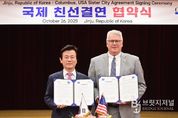 브릿지저널 김경미 기자 | 진주시는 26일 진주시청 2층 시민홀에서 미국 조지아주 콜럼버스시와 국제 친선결연 협약을 체결했다고 밝혔다. 이날 협약식에는 조규일 진주시장, 스킵 헨더슨 콜럼버스 시장, 백승흥 진주시의회 의장, 김종욱 진주 K-기업가정신재단 회장, 스튜어트 레이필드 콜럼버스 주립대학교 총장, 미시 켄드릭 Choose Columbus 회장, 기업인 등 두 도시의 주요 인사 30여 명이 참석한 가운데 개최됐다. 콜럼버스시는 미국 조지아주에 위치하며 친기업 정책으로 신규 기업투자가 활발하며 한국의 제조공장들이 다수 진출한 미국 남동부 제조업의 허브로 알려져 있다. 이번 진주시와 콜럼버스시 간 친선결연 협약은 지난 6월 콜럼버스 주립대학교 대표단 방문 시 체결된 업무협약을 계기로 양 도시 간 우호 증진과 교류 확대에 대한 공감대가 형성되면서 결실을 맺게 된 것이다. 협약의 주요 내용은 △긴밀한 우호 관계 확립 △상호 공동 관심 분야의 교류 활동 △지식정보 교환 등 우호적 환경 조성 등 양 도시 간 긴밀한 우호 관계 확립을 위한 활동 및 지원 추진이 포함됐다. 양 도시는 이번 자매도