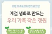 브릿지저널 김경미 기자 | 인천광역시교육청연수도서관은 오는 10월 25일 오후 2시 평생학습1실에서 가족 이용자를 위한 ‘10월 가족 토요체험 프로그램’을 운영한다. 이번 프로그램은 ‘우리 가족 마음 정원’을 주제로 가을의 정취를 담은 그림책을 함께 읽으며 가족의 마음을 돌아보고 함께 소통하는 시간을 갖는다. 이어지는 원예 활동에서는 계절 생화를 활용해 가족의 작은 정원을 만들며 자연과 감성을 나눌 예정이다. 참여 신청은 10월 13일부터 연수도서관 누리집에서 선착순 접수하며, 자세한 내용은 연수도서관 독서문화과 로 문의하면 된다.