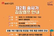 브릿지저널 윤나영 기자 | 영월군 상동읍의 청정 지역 김치 브랜드인 농업회사법인 솜씨가는 오는 11월 22일 토요일 오전 9시부터 오후 6시까지 제2회 솜씨가 김장캠프를 개최한다. 이번 행사는 김장 체험을 통해 지역 농산물의 우수성을 널리 알리고 지역 주민과 관광객이 함께 어울리는 상생의 장을 마련하기 위해 기획됐다. 김장캠프에서는 상동읍 전 주민을 초청해 식사를 대접하고 소규모 콘서트와 경품 행사 등을 진행하며 주민 화합의 분위기를 조성할 예정이다. 또한 지역 내 캠핑장과 연계해 외부 관광객에게 숙소를 제공함으로써 방문객 유치와 지역 관광 활성화에도 이바지할 계획이다. 행사에 필요한 절임배추 역시 지역 내에서 구매해 지역경제에 도움이 될 수 있도록 했다. 아울러 상동고 야구부 학생들과 함께 김장을 버무리는 체험을 진행한 뒤 완성된 김치를 관내 저소득층 가구에 지원할 예정이며, 김장 나눔을 통해 지역사회 돌봄과 따뜻한 나눔 문화를 확산하는 계기가 될 것으로 기대하고 있다.