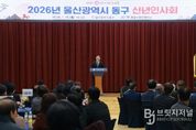 브릿지저널 윤나영 기자 | 울산 동구는 1월 15일 오전 10시 30분 동구청 2층 대강당에서 2026년 울산광역시 동구 신년 인사회를 개최했다. 이번 신년 인사회는 동울산청년회의소(회장 전종현)가 주관한 것으로 김종훈 동구청장을 비롯한 동구 지역 각급 기관·단체장 200여 명이 참석하여, 구정 발전을 위한 덕담과 화합의 시간을 나눴다. 이날 행사에서는 ‘AI에게 동구의 미래를 묻다’라는 주제로 인공지능 프로그램을 활용해 동구청 직원들이 직접 제작한, ‘다시 뛰는 심장, 2040 울산 동구’ 영상을 함께 시청하며 동구의 미래를 그려보는 흥미로운 시간을 마련했다. 김종훈 구청장은 지난 3년 반의 시간 동안 ‘더 잘 사는 동구’를 목표로, 구청과 각급 기관단체가 함께 동구 주민의 더 나은 삶을 위해 힘써 왔다”라며 각급 기관·단체장들에게 감사의 인사를 전했다. 또한 “앞으로 산업과 도시의 구조 자체가 급변하는 미래를 맞이하여 한 단계 더 도약하고 성장하는 동구를 만들기 위해 기관·단체·기업이 손잡고 미래의 힘찬 여정을 함께해 주시길 바란다”라고 말했다.
