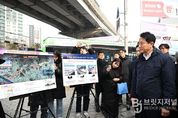 브릿지저널 김경미 기자 | 오세훈 서울시장은 15일 오후 2시 지난달 발표한 '강북횡단 지하도시고속도로 건설사업‘ 대상지인 홍은사거리 유진상가 인근 내부순환로 고가차도 현장을 방문해 사업추진 방향을 점검했다. ‘강북횡단 지하도시고속도로’는 성산IC~신내IC 내부순환로와 북부간선도로 약 22km 고가를 철거하고 왕복 6차로 지하도로를 신설하는 대규모 사업으로, 2030년 착공해 2037년 완공을 목표로 추진된다. 오 시장이 방문한 유진상가는 1970년에 건설된 주상복합으로, 1994년 내부순환로가 건물과 인접해 건설되면서 소음과 매연으로 인해 주거와 상권이 동반 쇠퇴되어 왔다. 또한 인근 지역은 30년 이상 노후화한 건축물이 약 84%로 주민 안전을 위해 개발이 시급한 곳 중 하나로 꼽힌다. 특히 하천부지 위에 건물이 있는 특수한 형태로, 사업성이 없어 번번이 개발이 무산됐으나 서울시의 ‘역세권 활성화 사업’을 통해 용적률을 높여 사업성을 확보, 올해 상반기 정비계획통합심의와 하반기 사업시행인가를 앞두고 있다. 이날 오 시장은 유진상가와 홍은사거리 일대를 차례로 방문해 도시환경을 저해하고 지역발전의