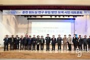 브릿지저널 윤나영 기자 | 춘천시의회 미래발전연구회(회장 김영배)와 강원도민일보는 11월 17일(월) 오후 2시, 춘천시청 대회의실에서 ‘원도심 공동화에 따른 원인과 향후 대책’ 포럼을 개최했다. 이번 포럼은 춘천 원도심의 공동화 문제를 진단하고 실효성 있는 인구 유입 및 활성화 방안을 모색하기 위해 마련됐다. 전문가와 시민이 함께 지역 문제 해결 방향을 고민하는 자리가 됐으며, 특히 구도심 지역 주민들도 참석해 현장에서 개선 의견을 직접 제시하는 등 활발한 토론이 이어졌다. 포럼에는 ▲김영배 춘천시의회 의원 ▲이훈래 한림성심대학교 행정실무과 교수 ▲최영진 ESG정책연구원 원장 ▲정성진 강원대학교 비교법학연구소 부연구위원이 패널로 참여해 원도심의 인구 감소 원인, 상권 쇠퇴, 생활환경 개선, 정책적 지원 방안 등에 대해 의견을 제시했다. 이날 참석자들은 재건축, 재개발, 지속가능한 사회적 가치 생태계 구축, 구도심 도시환경 정비사업 등 다양한 대안을 제시하며 원도심 활성화를 위한 실질적 정책 방향을 논의했다.