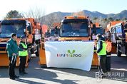 브릿지저널 윤나영 기자 | 평창군은 겨울철 폭설 및 결빙에 대비해 ‘겨울철 도로 제설 대책’을 본격 추진하기 위해 17일 오후 2시, 평창종합운동장 주차장에서 ‘2025~2026 동절기 재난 대책 기간 도로 제설 발대식’을 개최했다. 이날 발대식에는 심재국 평창군수 및 제설 운영 담당자 등 68여 명이 참석하여, 겨울철 제설 작업이 원활히 이루어질 수 있도록 결의를 다짐하고, 제설 차량을 점검하는 등 본격적인 제설 시작에 앞서 협력체계를 다졌다. 현재 평창군은 군 보유 및 임차 장비 총 36대, 제설제(소금 7,000톤, 염화칼슘 및 염화수 230톤, 모래 3,196㎥)를 확보하여, 제설대기소 및 읍・면사무소에 배치를 완료한 상태다. 이번 제설 대책은 겨울철 폭설 및 결빙 시 신속하고 체계적인 제설 대응을 통해 차량의 원활한 통행을 돕고, 교통사고를 예방하며, 군민의 통행 불편을 최소화하고 안전한 도로 통행권을 확보하는 데 목적이 있다. 오현웅 군 건설과장은 “모든 준비를 마친 만큼 올겨울 폭설로 인한 군민들의 불편을 최소화하고, 교통사고 예방과 도로 안전 확보에 최선을 다하겠다.”라며 “특히 제설