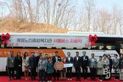 브릿지저널 윤나영 기자 | 강원특별자치도는 4월 2일 오전 10시, 북원노인종합복지관에서 복지관 셔틀버스 시승식을 개최했다. 이날 행사에는 원제용 강원특별자치도의회 사회문화위원장, 김기홍 도의원, 원주시 부시장, 밥상공동체복지재단 허기복 대표를 비롯해 지역 어르신 등 약 60여 명이 참석했다. 행사는 시승 기념 판넬 전달에 이어 도지사와 관계자, 어르신 30여 명이 직접 차량에 탑승해 체험하는 방식으로 진행됐다. 이번에 도입된 셔틀버스(45인승)는 어르신들의 이동 편의증진과 복지관 이용 활성화를 위해 총 2억 원(도비 1억, 시비 1억)을 투입해 지난 3월 구입했다. 도는 올해 어르신 병원동행, 응급안전안심 서비스, 노인맞춤돌봄 서비스, 노인 일자리, 경로당 운영 등에 총 1조 3천억 원을 투입해 어르신들의 안정적인 노후생활을 지원하고 있다. 또한 노인 일자리를 역대 최대 규모인 7만 9,459개로 확대하고 지난 3월 27일부터는 어르신이 살던 곳에서 계속 생활할 수 있도록 의료와 돌봄을 연계한 통합서비스(141억 원)을 제공하고 있다. 김진태 강원특별자치도지사는 “앞으