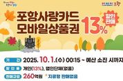 브릿지저널 정보영 기자 | 포항시는 추석 명절 지역경제 활력 제고를 위해 내달 1일부터 카드형·모바일 포항사랑상품권(이하 포항사랑카드)을 260억 원 규모로 13% 할인 판매한다. 시는 지난 9일 발행한 600억 원 규모 상품권이 완판됨에 따라, 내달에도 13% 할인 판매를 통해 시민과 소상공인들에게 직접적인 혜택을 제공하고, 지역 골목상권 소비 촉진의 마중물 효과를 이어가겠다는 방침이다. 올해 포항시는 당초 목표보다 500억 원 확대한 총 3,000억 원 규모의 상품권을 발행한다. 연말까지 매월 초 상품권을 발행하며 13% 할인율을 유지해 지역 자금 역외 유출을 막고 소상공인 매출 증대, 지역경제 선순환 구조 강화에 기여할 계획이다. 개인별 구매 한도는 월 50만 원, 보유 한도는 100만 원으로 조정된다. 개인을 대상으로만 할인하고, 지류형은 판매하지 않는다. 상품권은 10월 1일 0시 15분부터 모바일 앱 ‘iM샵’에서 충전할 수 있으며, 104개 판매대행 금융기관 영업점에서도 영업시간 내 충전이 가능하다. 포항사랑카드는 실물카드 결제 외에도 ▲삼성페이 ▲네이버페이