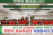 브릿지저널 윤나영 기자 | 진안군은 19일 오후 군청 강당에서 ‘2025 진안홍삼축제 자원봉사자 발대식’을 열고 본격적인 활동에 들어갔다. 이날 발대식에는 전춘성 진안군수와 이재동 (사)진안군자원봉사센터 이사장을 비롯해 성인·청소년 자원봉사자 150여명이 참석했다. 행사에서는 자원봉사자가 직접 제작한 진안홍삼축제 홍보 릴스영상 상영, 자원봉사자 결의문 낭독, 자원봉사자 교육 등이 진행돼 축제 준비의 열기를 더했다. 이번 발대식은 축제를 성공적으로 이끌어갈 자원봉사자들이 한자리에 모여 사기를 높이고 각오를 다지는 자리로, 축제 분위기를 한층 고조시켰다. ‘홍삼특공대’ 자원봉사단은 성인과 청소년 150여명으로 꾸려져 축제 기간 동안 체험부스 운영, 교통 안내, 환경 정비, 방문객 환영 등 다양한 분야에서 활동한다. 단순 지원을 넘어 진안의 얼굴이자 홍보대사 역할을 수행할 예정이다. 전춘성 군수는 “진안홍삼축제는 자원봉사자 한 분 한 분의 땀과 헌신으로 완성된다”며 “여러분의 활약이 관광객에게 감동과 좋은 기억으로 남을 것”이라고 말했다. 이재동 이사장은 “봉사는 작은 수고가 모여 큰 변화를